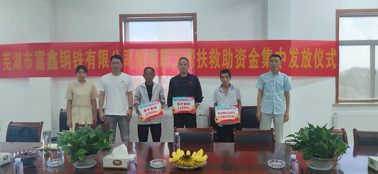 1月11日,蕪湖市富鑫鋼鐵有限公司工會舉行2022年春節(jié)困難職工幫扶慰問金發(fā)放儀式,繁昌區(qū)總工會黨組成員徐飛、新港鎮(zhèn)...